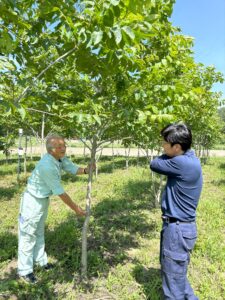 まずは試験栽培によって飯舘の地でしっかりと育つのか、放射性物質が漆に及ぼす影響がないかを確かめつつ、私たちはウルシネクストや関係者の皆様と手を携え、国産の漆液採取とSDGsに沿った6次産業化、そして何より飯舘の漆が日本の国宝・重要文化財の保存修理、漆文化の継承の役に立てることを目指して、飯舘の畑で漆を育てる試みを行っています。